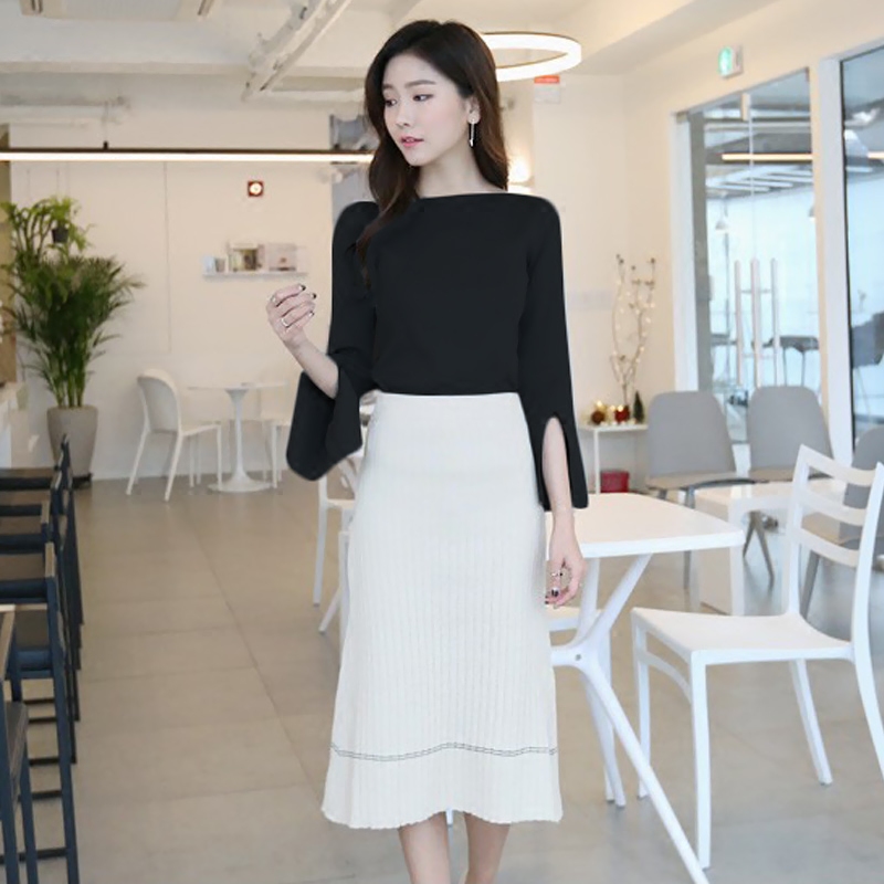 春季新款針織套裝女修身時尚針織衫包臀裙連衣裙兩件套打底裙