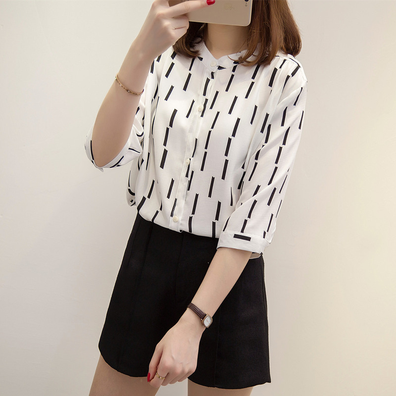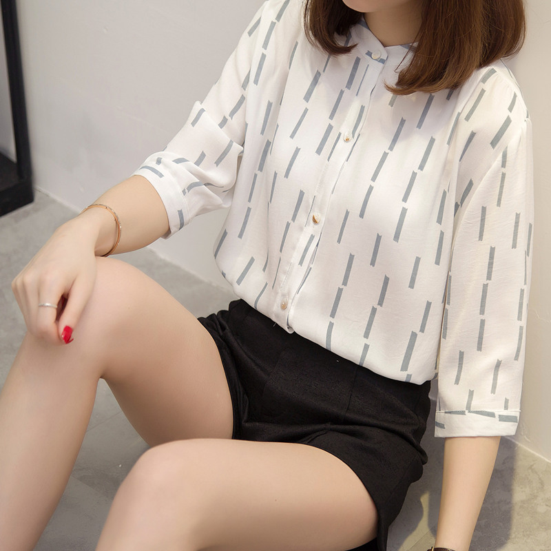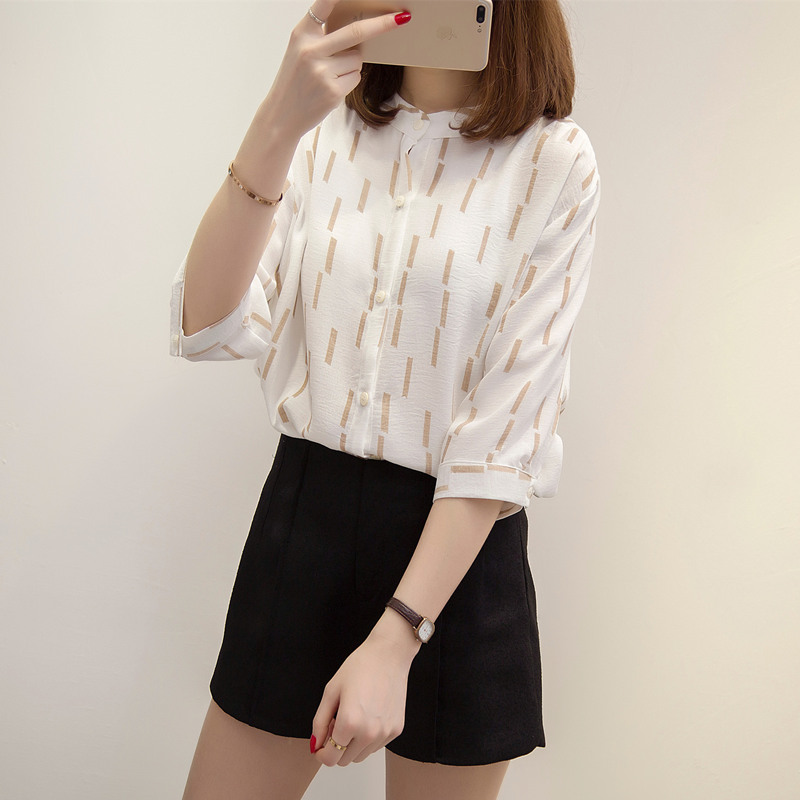 夏裝新款女小清新白襯衫女chic半袖外套韓范條紋襯衣上衣女夏