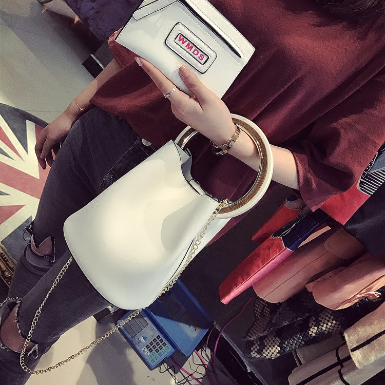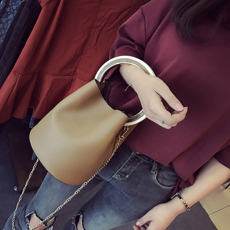 包包女新款潮韓版百搭斜挎包復古手提水桶包鏈條單肩女包小包