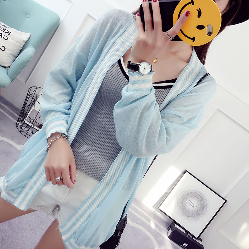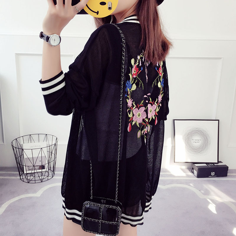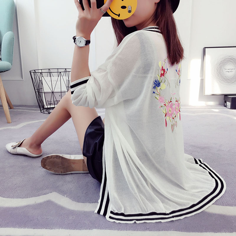 冰絲針織衫開衫女短款夏季薄款外套防曬衫外搭韓版寬松刺繡空調衫