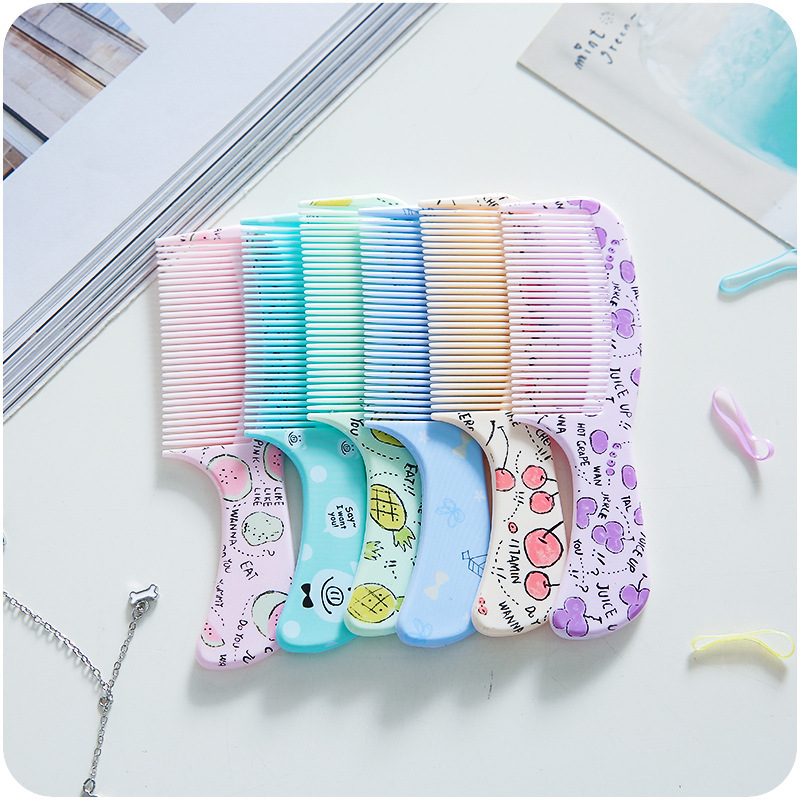 弧形卷發吹直發劉海內扣造型梳美發加厚塑料梳齒梳子卡通水果印花