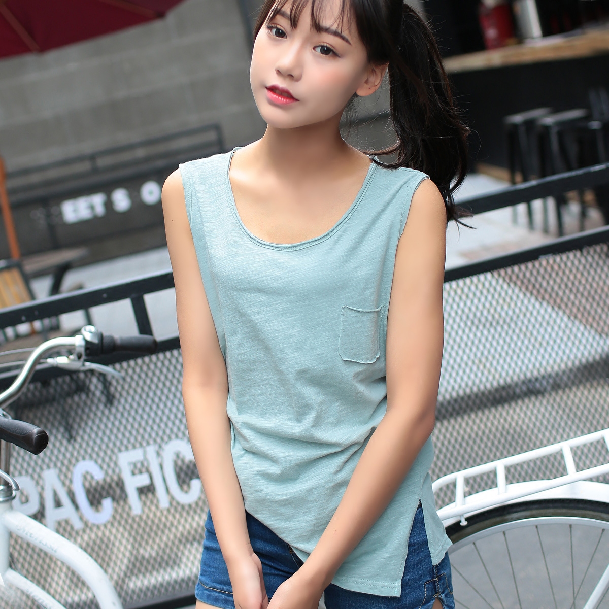 夏裝新款大碼休閑百搭寬松圓領竹節棉打底背心女吊帶外穿