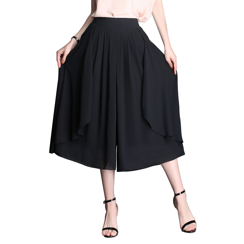 裙褲女夏新款高腰顯瘦韓版雪紡七分闊腿褲夏季女九分薄款褲裙