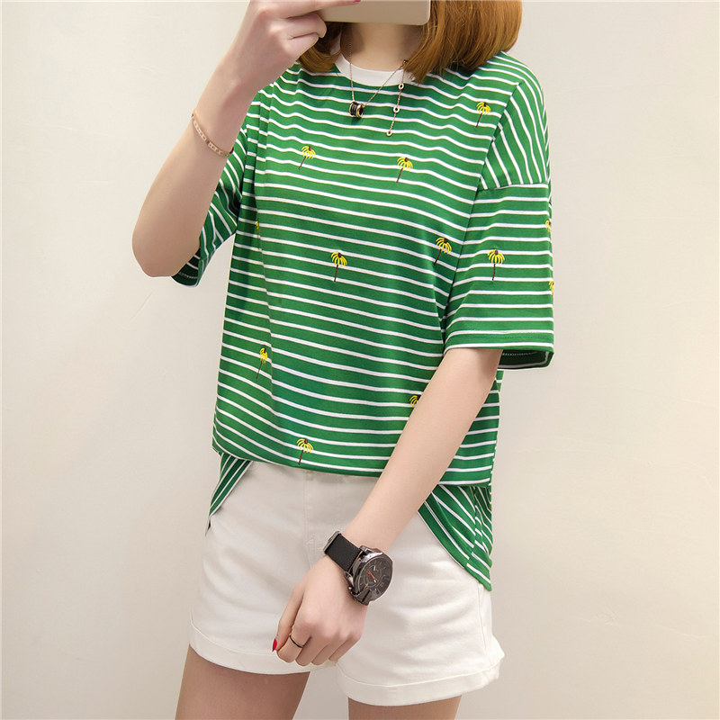 女裝春裝新款潮條紋短袖t恤女寬松上衣韓版體恤夏裝學生百搭