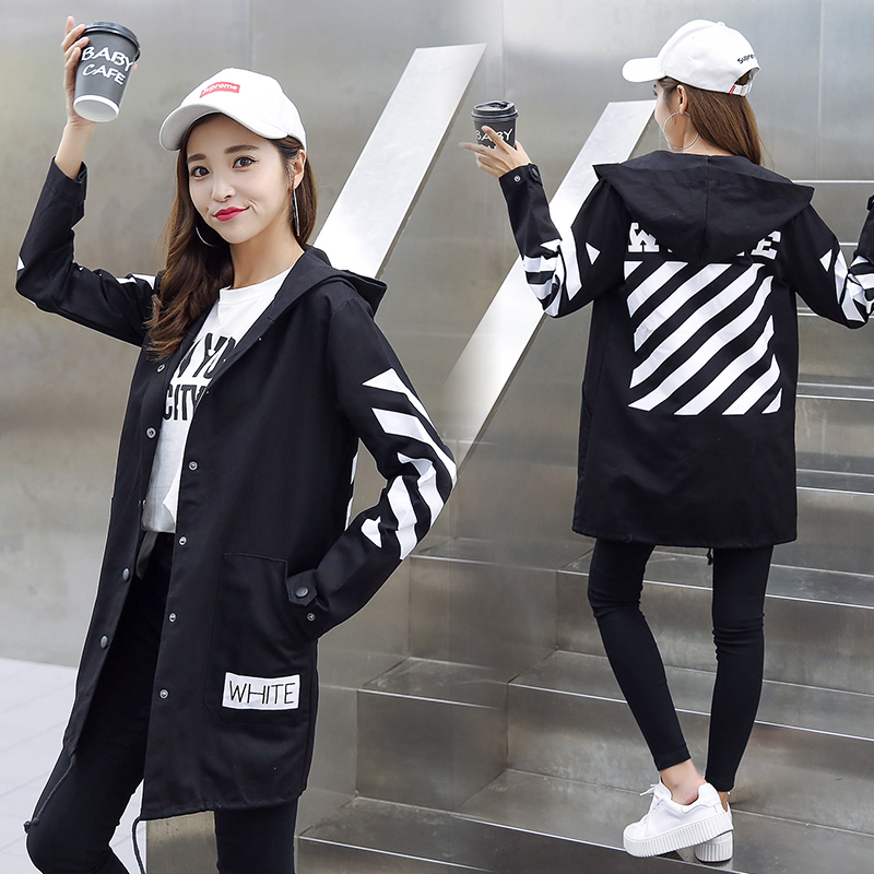 風衣女中長款2017新款秋裝韓版學生bf原宿風寬松休閑百搭港風外套