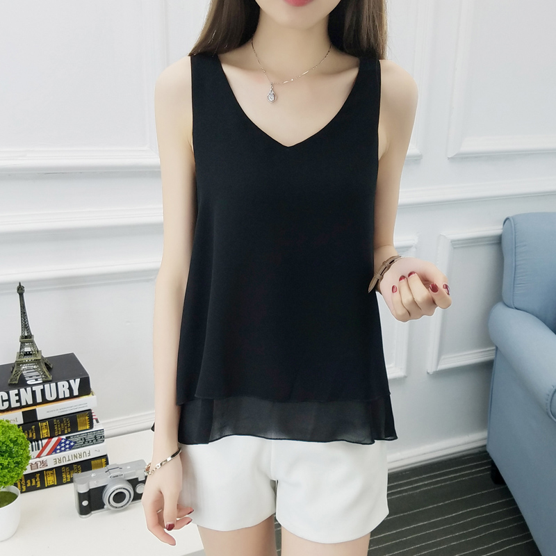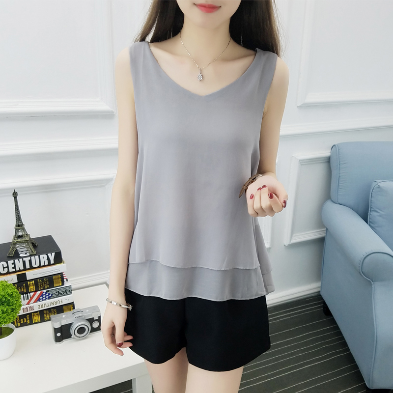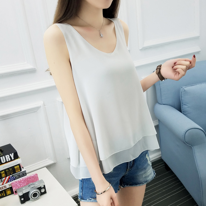 吊帶背心女夏季新款短款雪紡無袖t恤寬松百搭外穿上衣吊帶衫