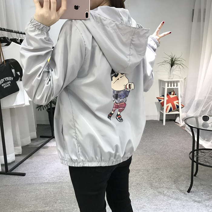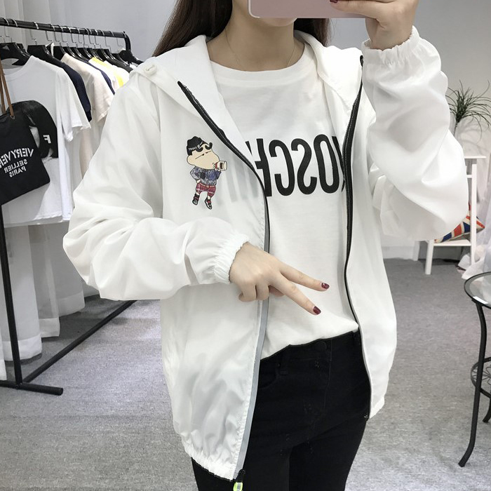 防曬衣女春夏少女寬松印花連帽薄款外套女韓版中學生顯瘦休閑上衣