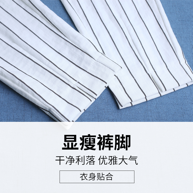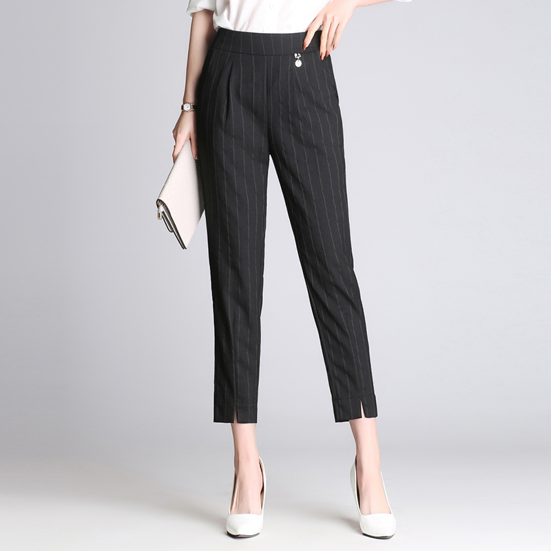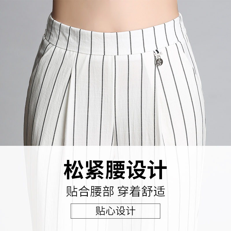 春夏哈倫褲寬松蘿卜褲大碼闊腿九分褲女黑色休閑條紋西裝褲女褲子