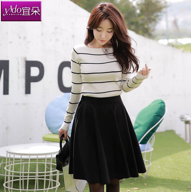 黑白條紋針織衫女短款春女裝中袖修身打底衫針織衫t恤女春季外穿
