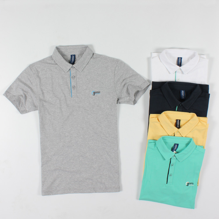 三粒扣純色翻領短袖T恤 96.3%棉柔軟舒適 時尚簡約男夏休閑polo衫