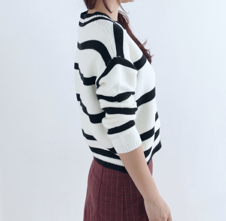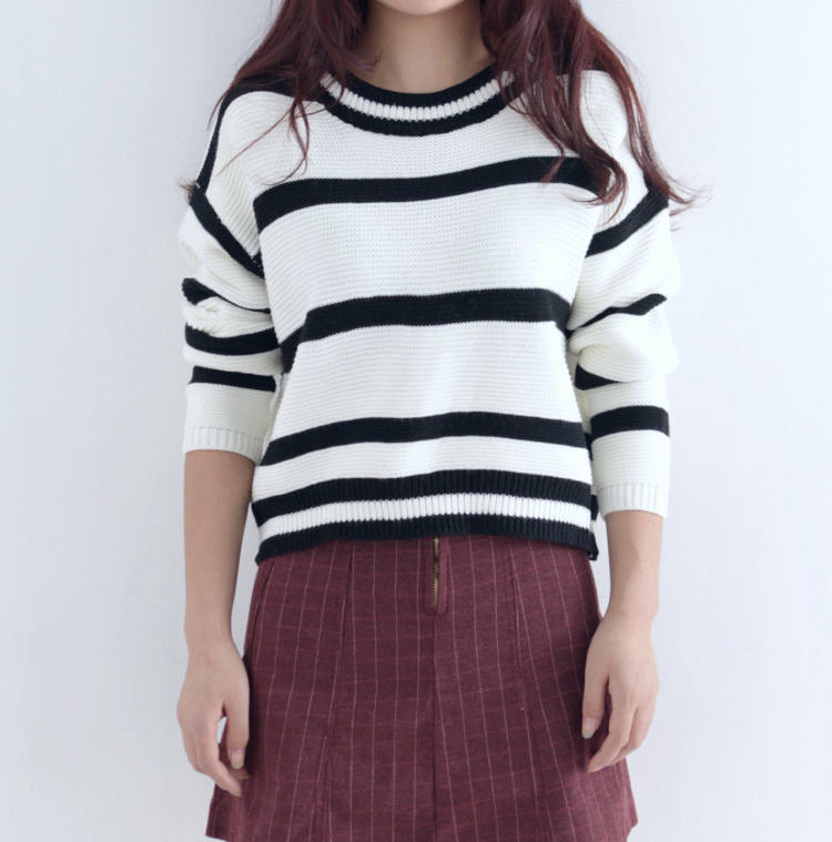 秋冬新款寬松短款條紋女裝毛衣上衣韓版套頭長袖打底針織衫外套女