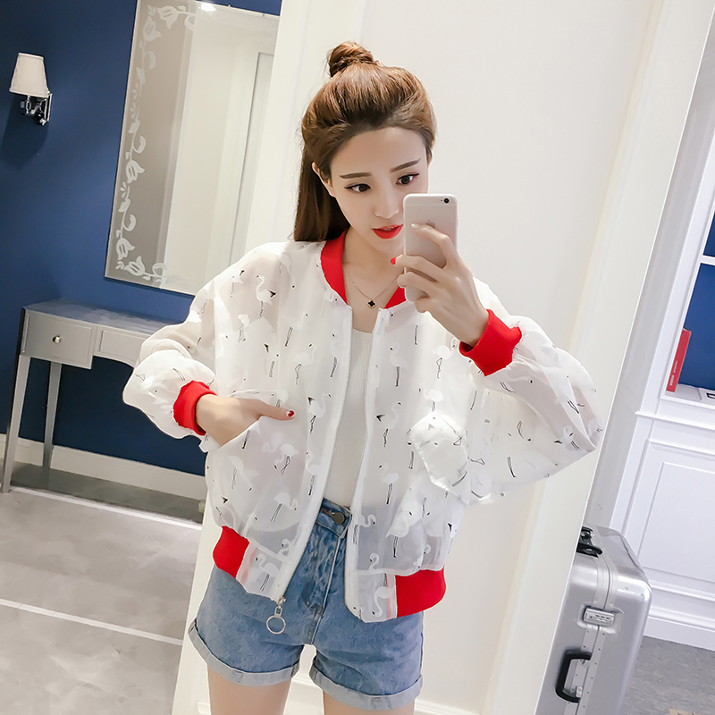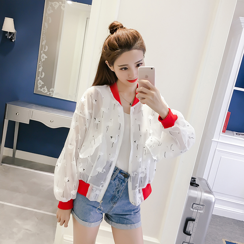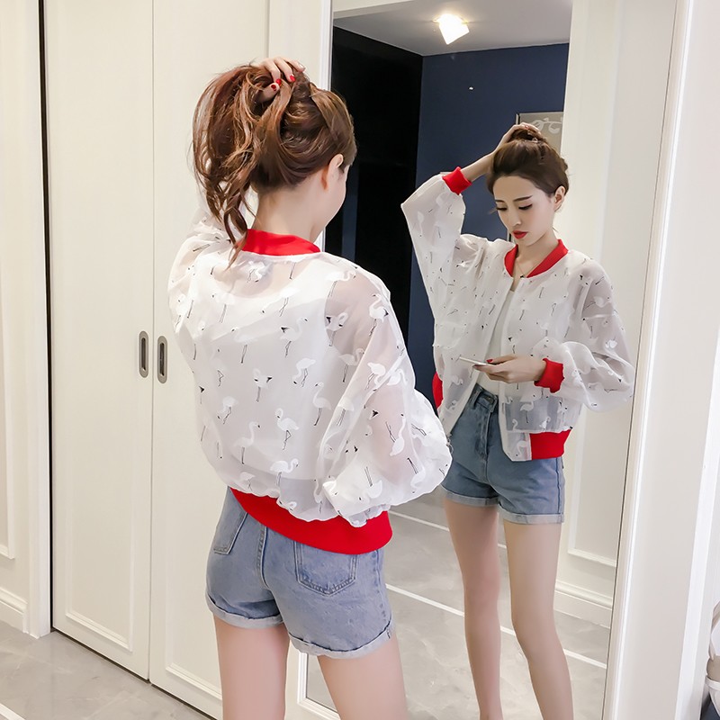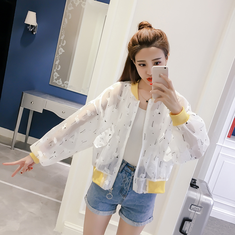 防曬衣女夏季新款透視歐根紗韓版長袖寬松百搭短款外套棒球服