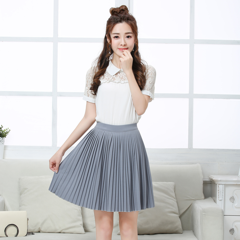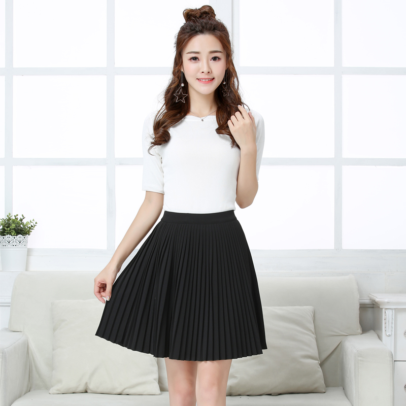 雪紡中長款百褶裙春夏新款a字短裙學生韓版高腰百搭半身裙子
