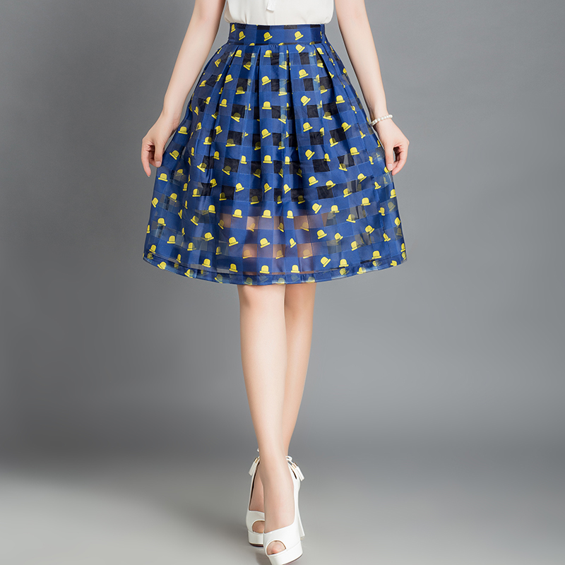夏新款百褶不規則網紗紗裙半身裙蓬蓬裙中長款玻璃紗高腰雪紡