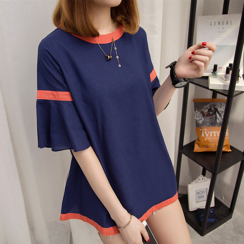 夏裝新款女裝荷葉袖韓版薄款寬松t恤女體恤衫百搭上衣服女夏