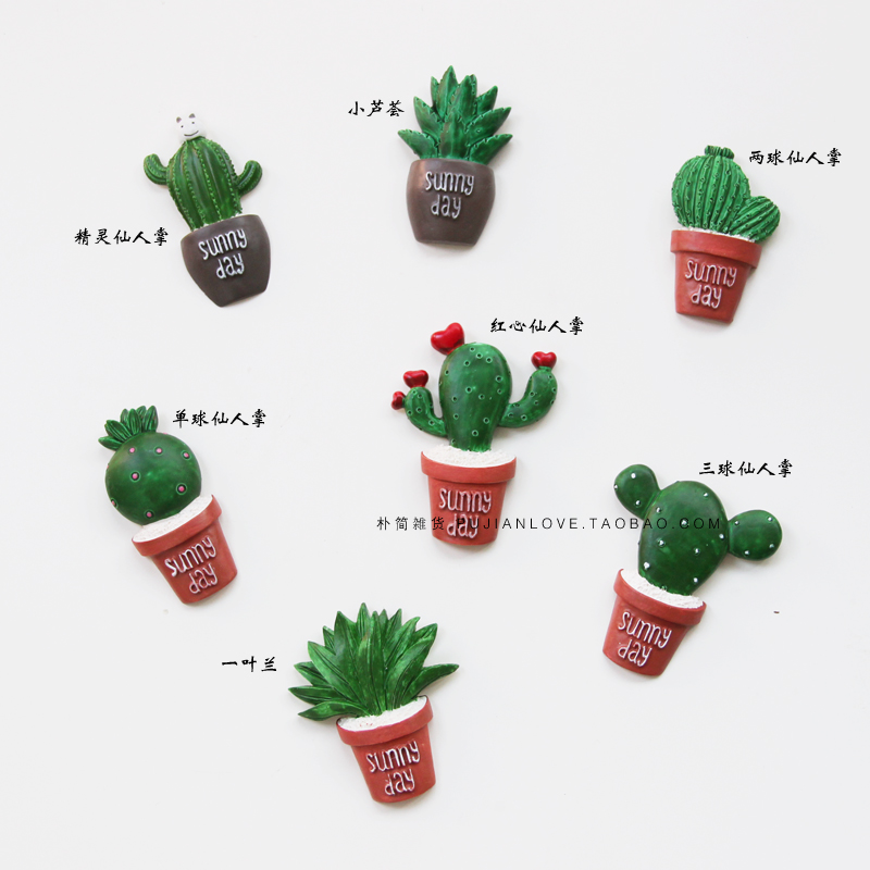 外貿綠色植物樹脂冰箱磁性貼 可愛仙人掌多肉花卉吸鐵石留言貼