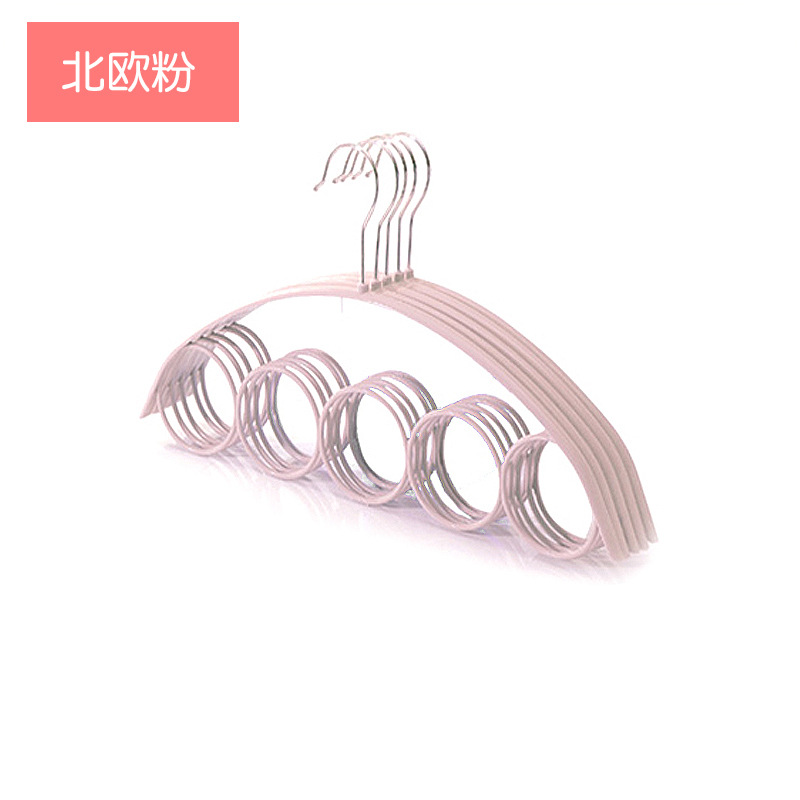 不易變形簡約北歐5環圍巾架防滑塑料衣架 衣柜收納絲巾領帶掛架