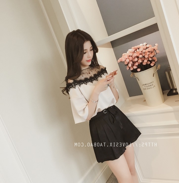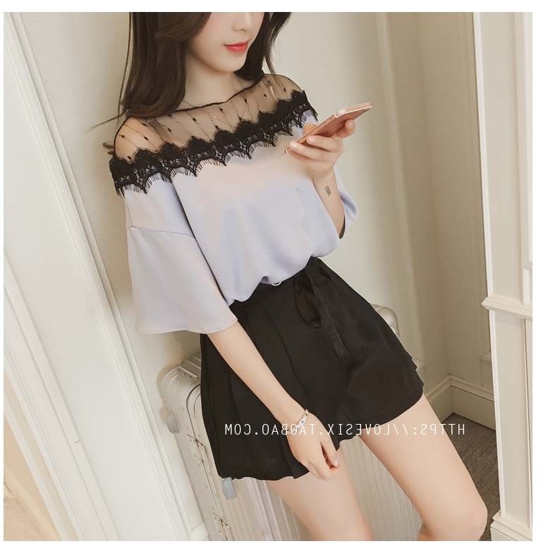 女裝春夏新款韓版學生寬松雪紡衫套裝女休閑闊腿褲短褲兩件套