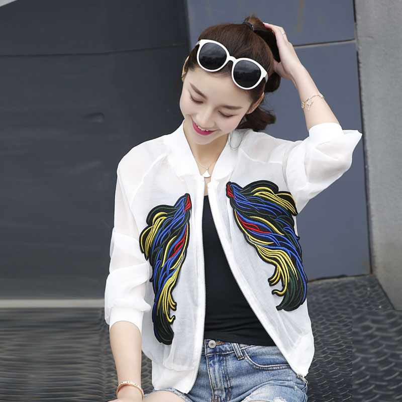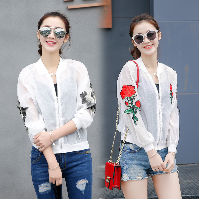 春秋夏季新款刺繡棒球服白色薄外套女防曬衣韓版寬松短夾克衫