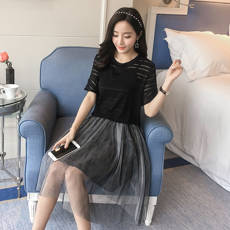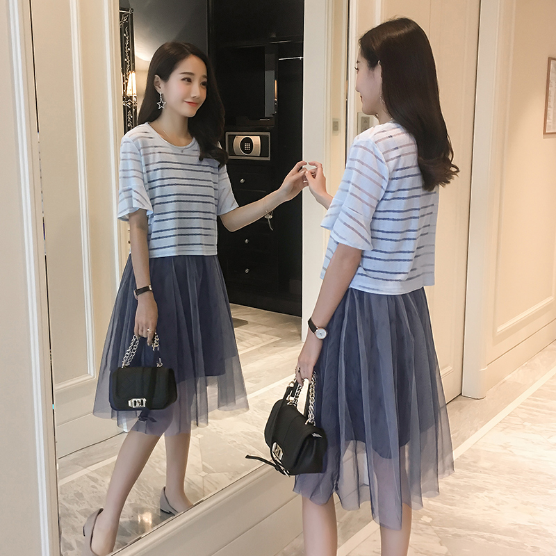 夏季新款女裝韓版罩衫吊帶裙兩件套中長款顯瘦短袖連衣裙套裝