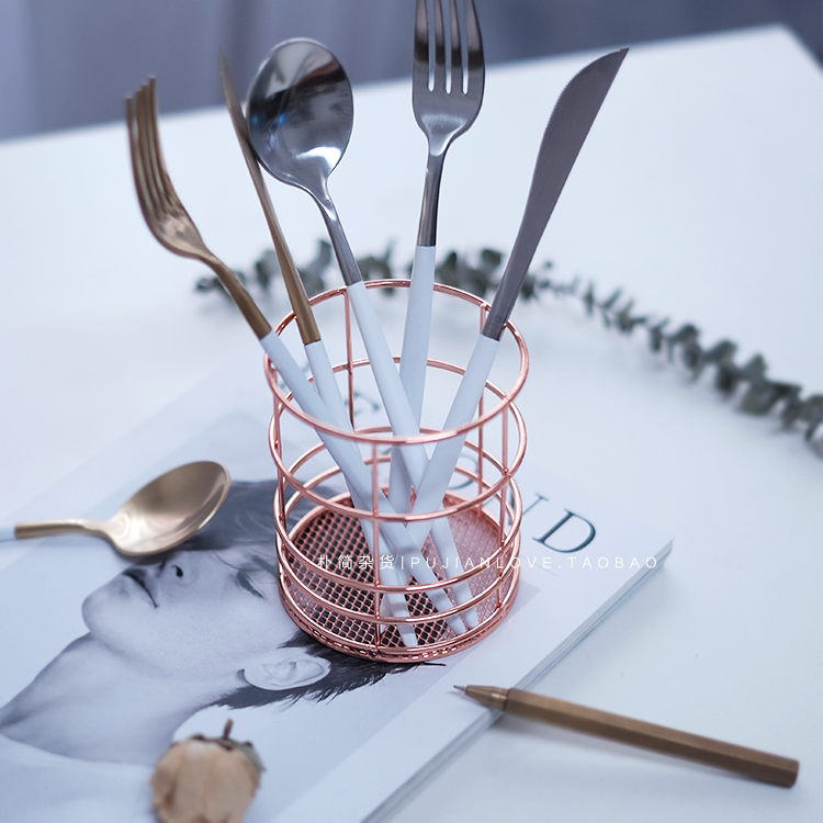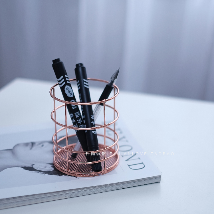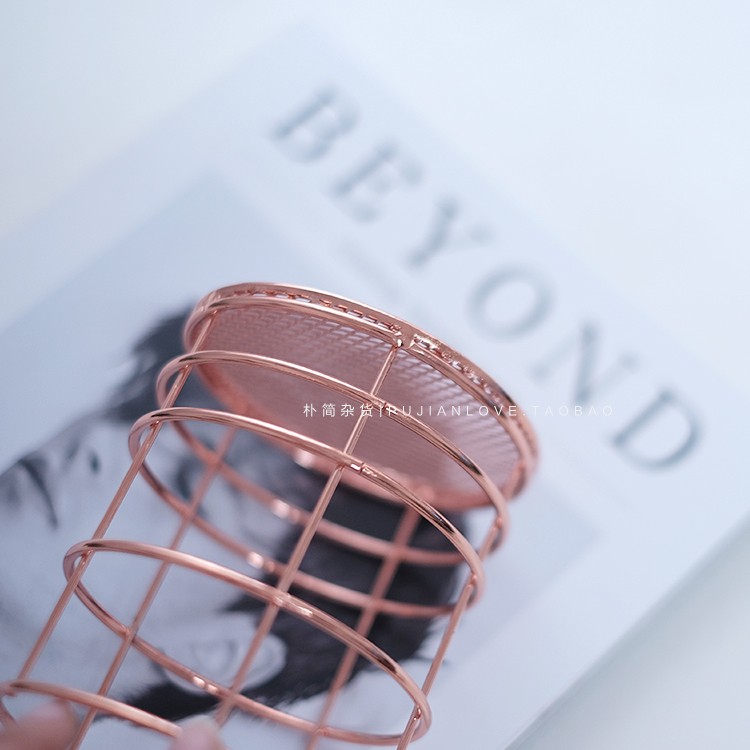 樸簡|ins北歐風玫瑰金色鐵藝收納筒 筆筒 家居陳列收納擺件