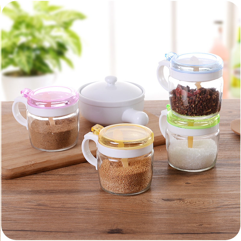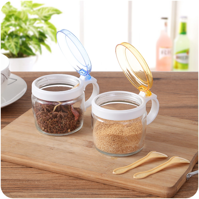 廚房家用品創意玻璃密封調味品按壓罐蓋燒烤調料瓶佐料盒鹽罐瓶罐
