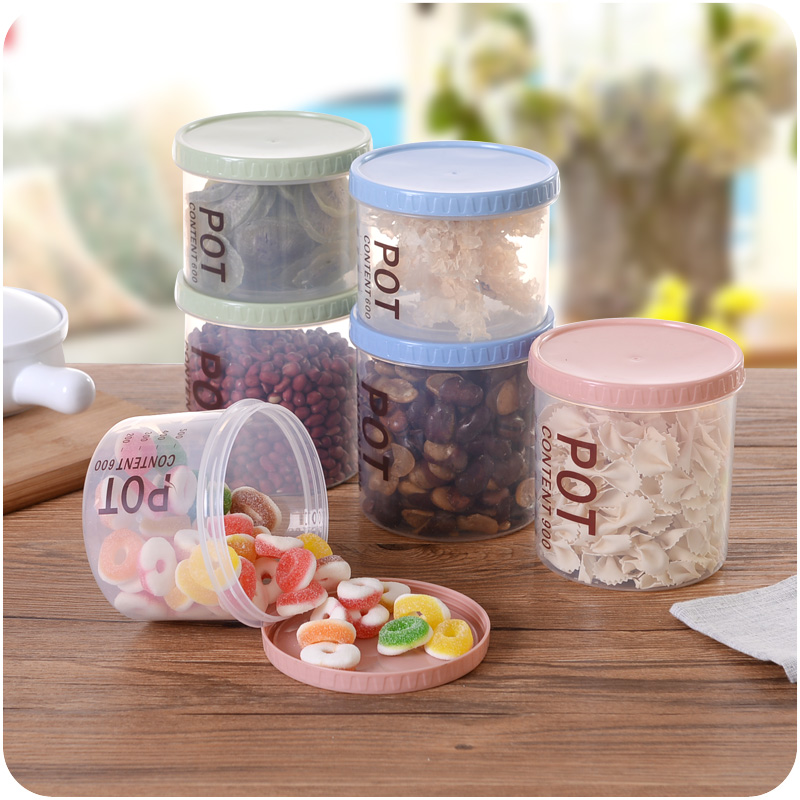 圓形旋轉廚房透明零食收納盒儲物罐塑料五谷雜糧收納罐食品密封罐
