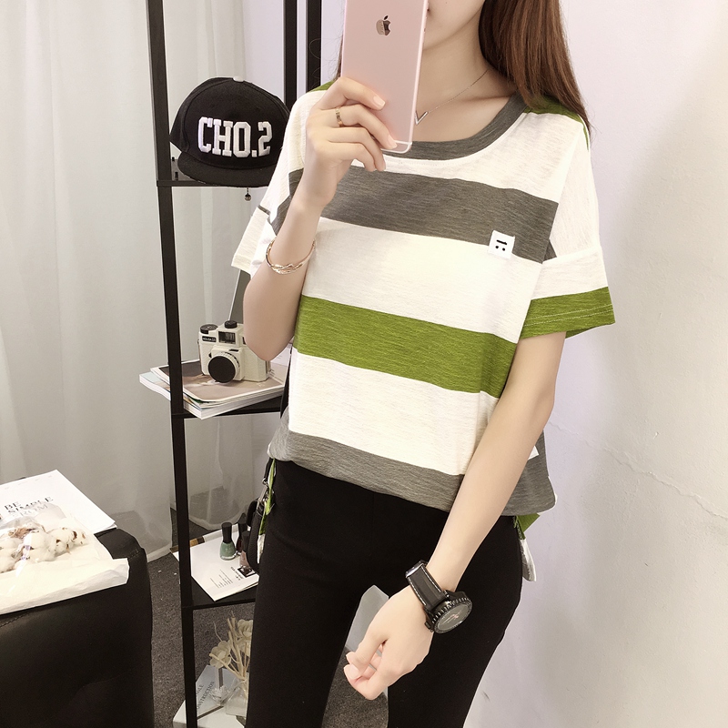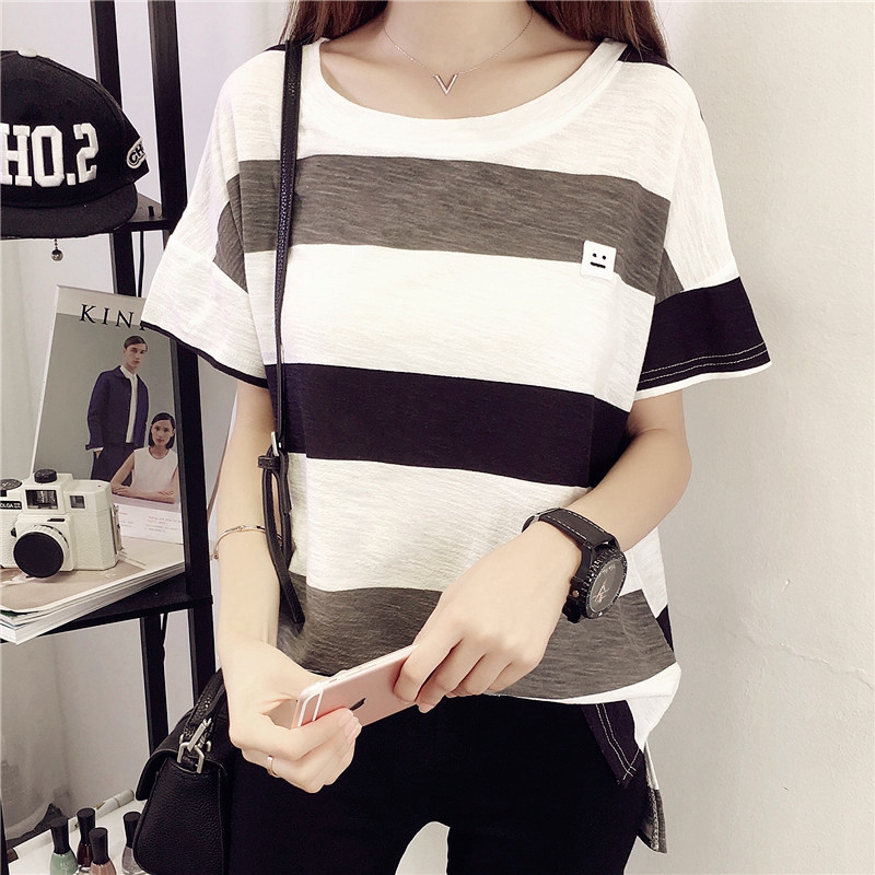 短袖女T恤條紋寬松韓版秋裝上衣半袖秋季體恤女裝夏裝新款潮