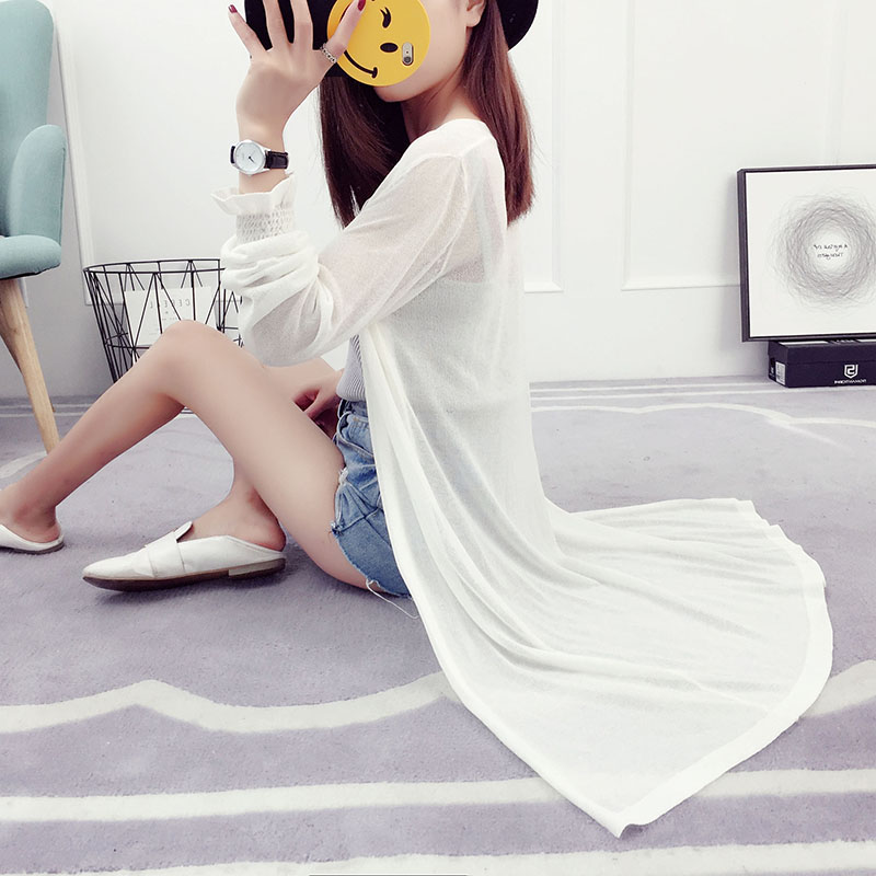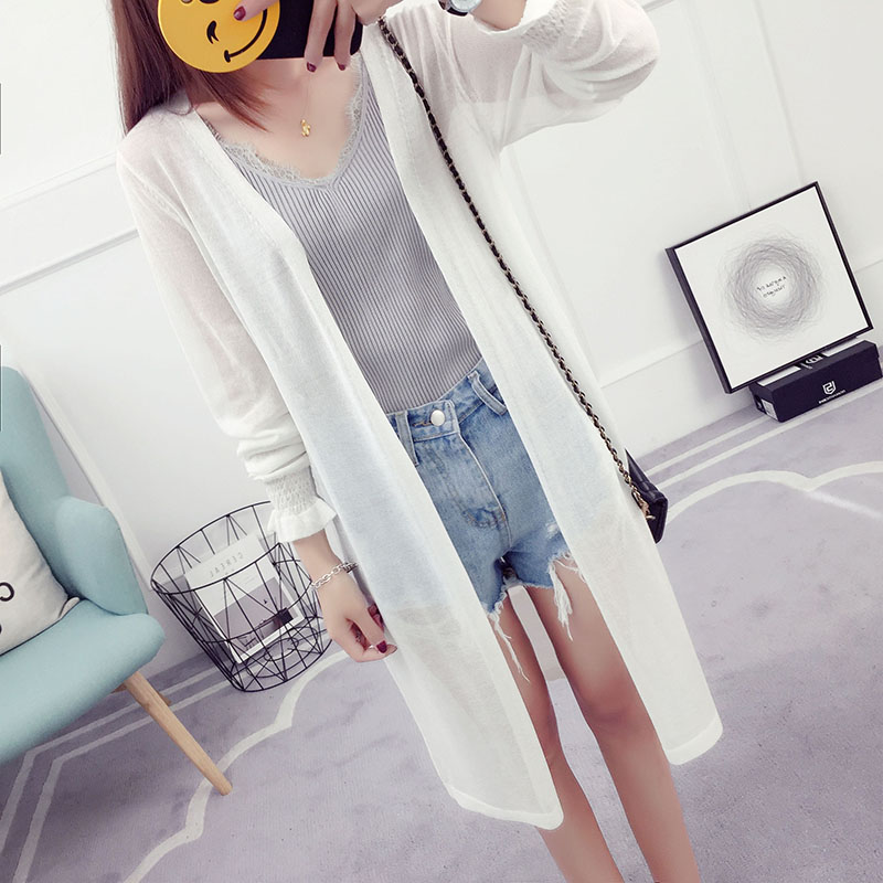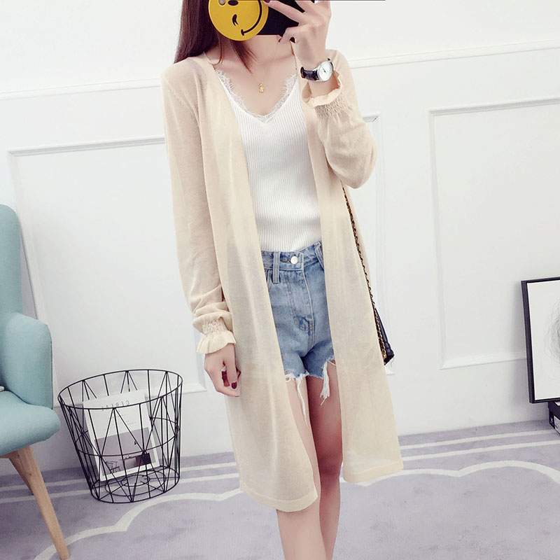 針織衫外套女開衫長袖新款喇叭袖上衣韓版夏季薄款中長款防曬