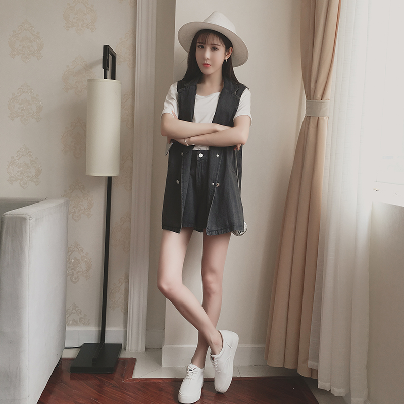 夏季新款韓版時尚小香風馬甲外套牛仔套裝女休閑短褲兩件套潮