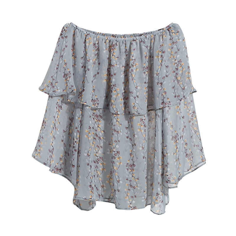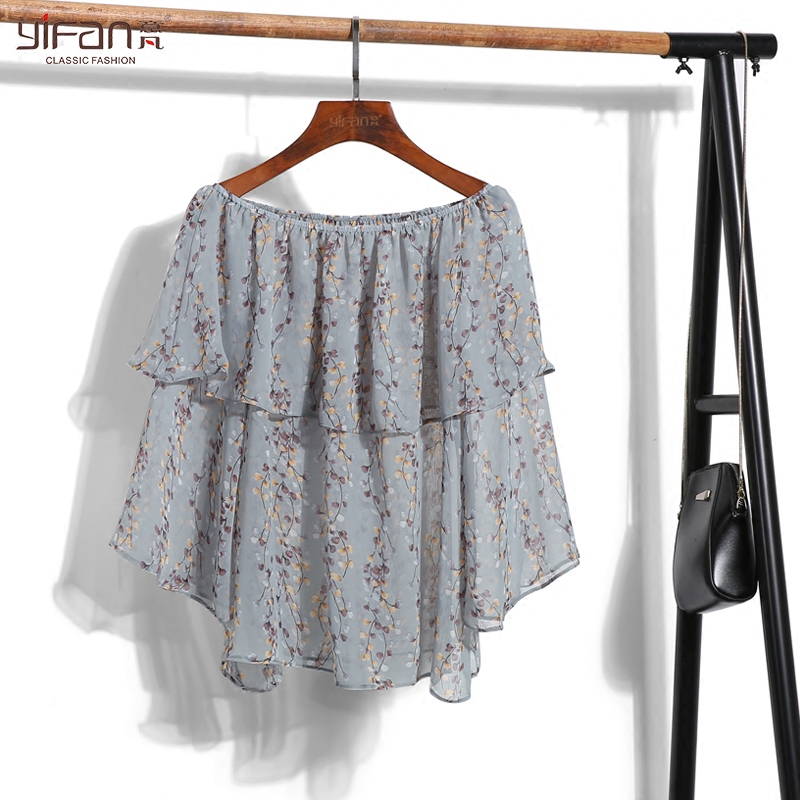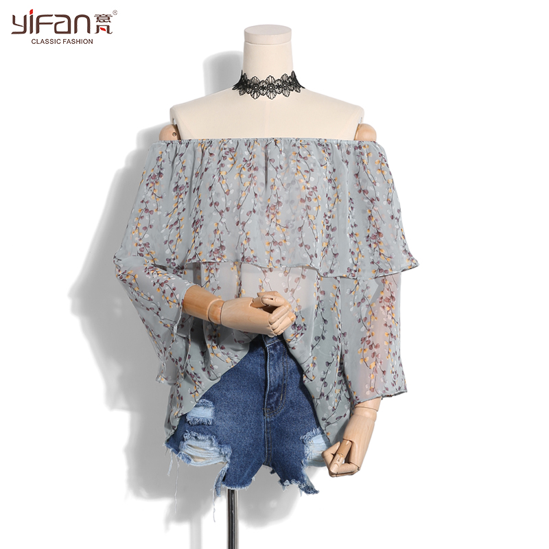 韓國新款氣質荷葉邊一字領性感露肩寬松喇叭袖雪紡衫上衣女夏薄款