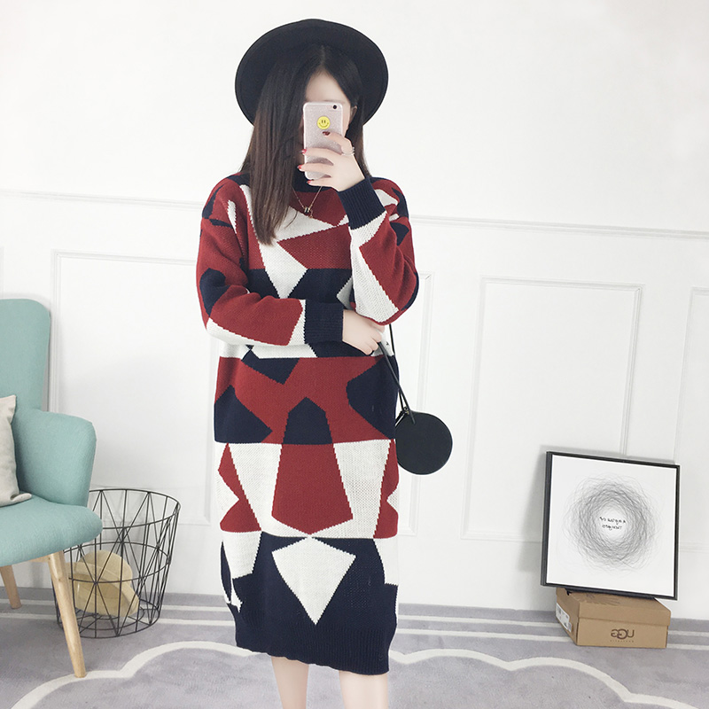 套頭毛衣女秋冬韓版圓領中長款寬松針織衫外套女裝秋裝新款潮