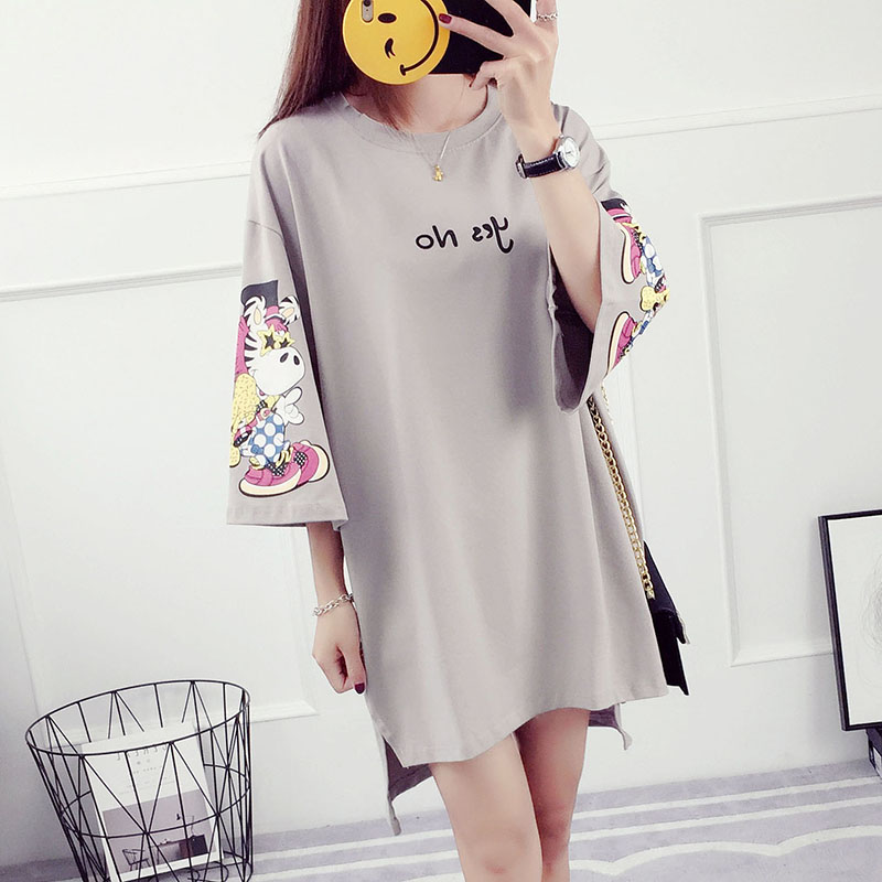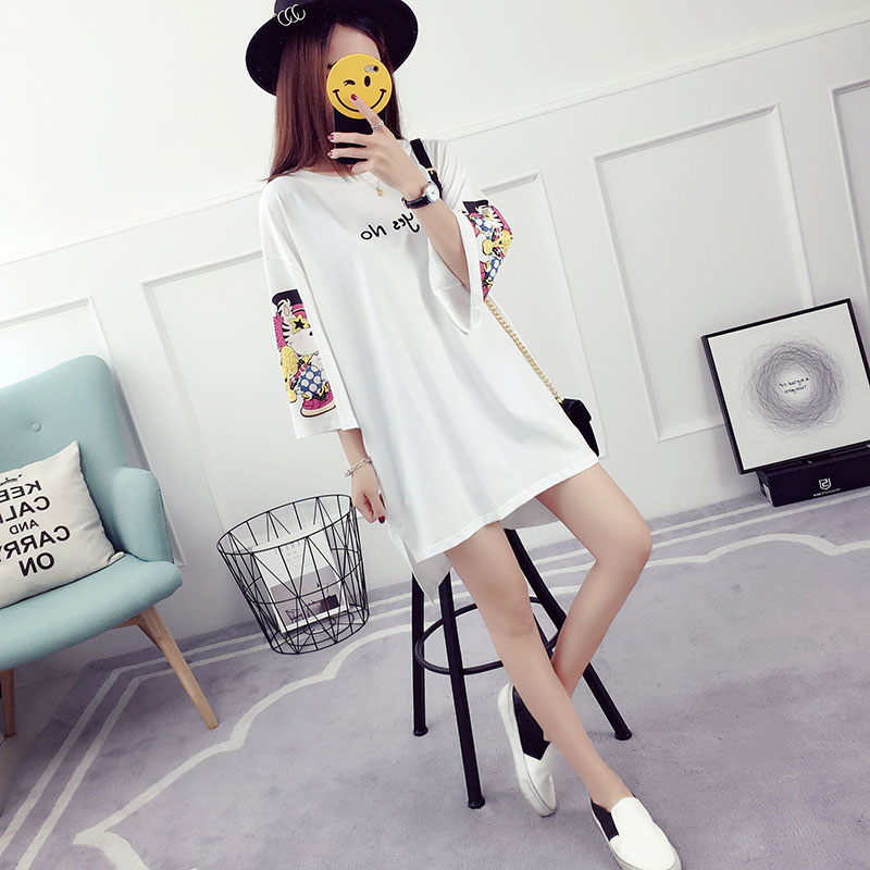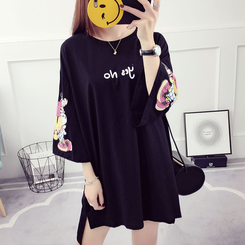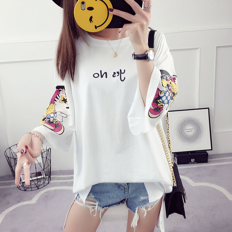 夏裝新款韓版百搭學生寬松上衣服中長款t恤女印花中袖打底衫
