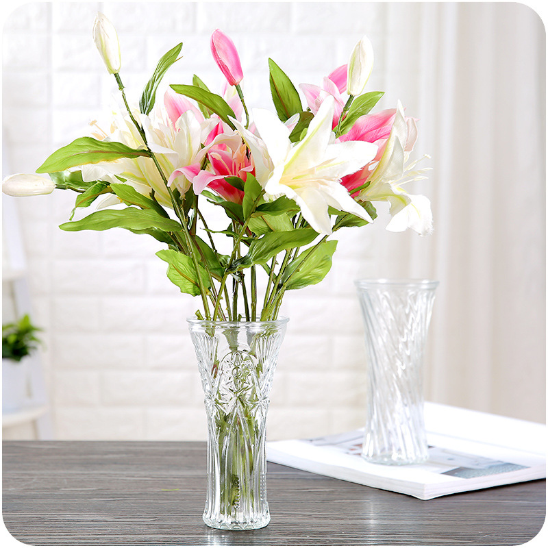簡約透明歐式玻璃插花瓶客廳辦公多用擺件水培富貴竹百合落地花瓶