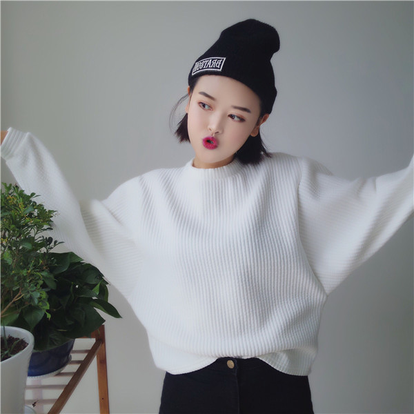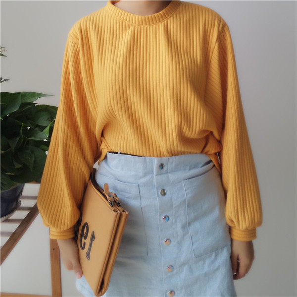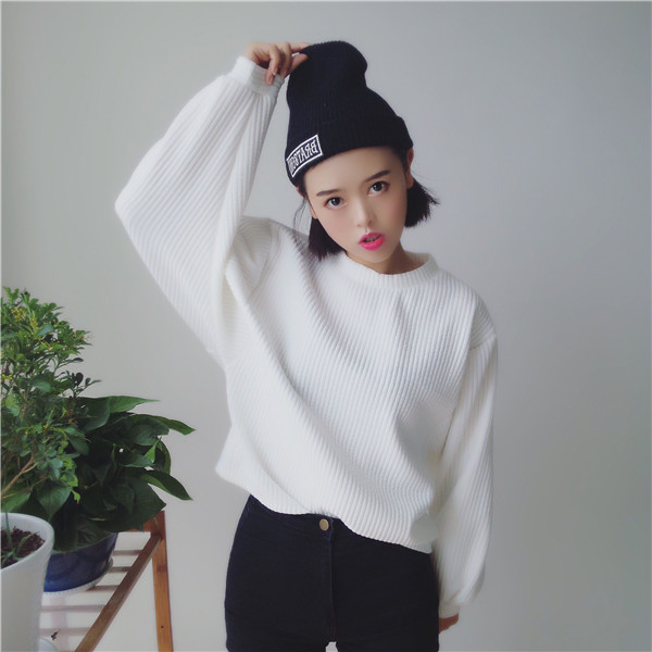 秋季韓版新款學院風純色百搭寬松顯瘦圓領套頭長袖衛衣螺紋上衣女