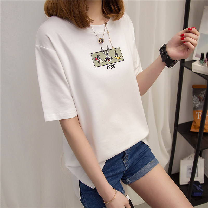 衣服女春裝新款潮上衣短袖t恤女寬松韓版體恤衫學生打底衫女