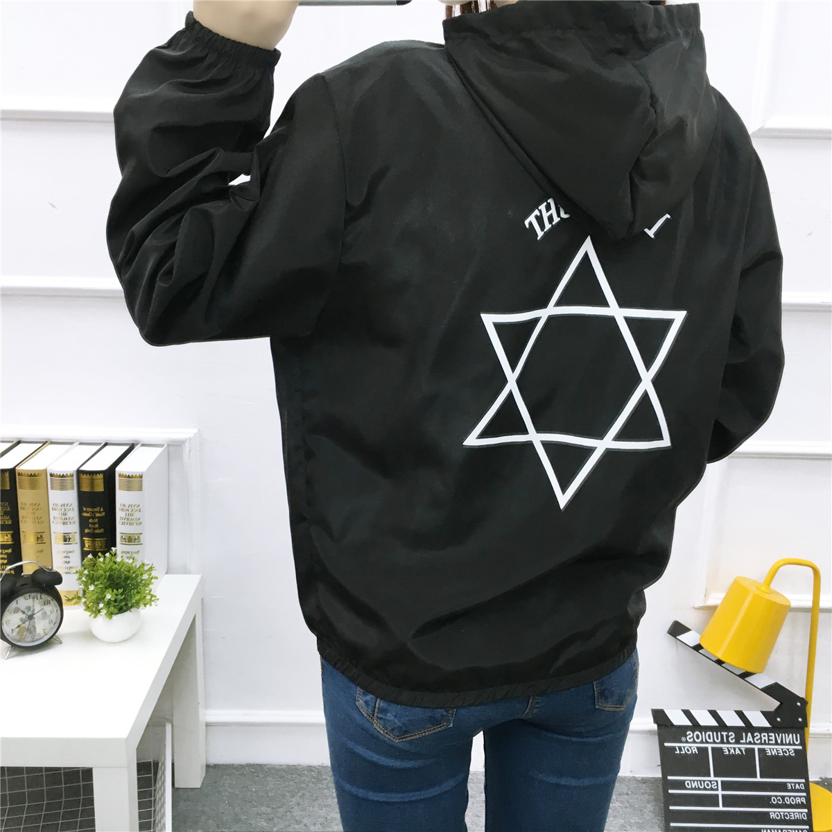 2017春秋新款學院連帽情侶工裝原宿印花學生百搭外套女bf棒球服潮