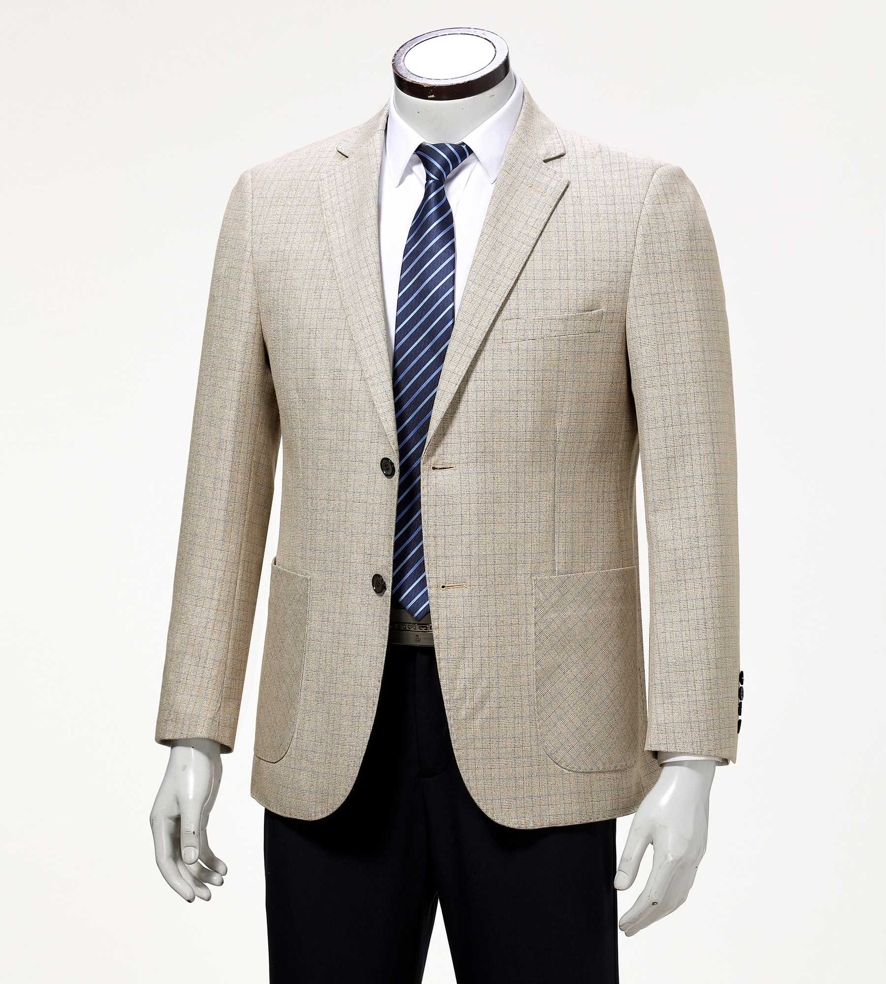 18春裝新款品牌中年男士西服休閑男裝羊毛格子單件西裝外套男上衣