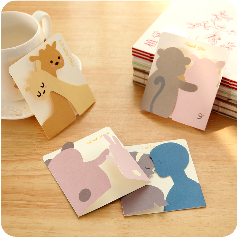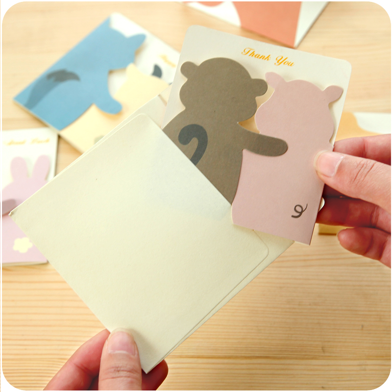 小動物賀卡創意DIY祝福生日新年帶信封留言小卡紙片立體形象卡通