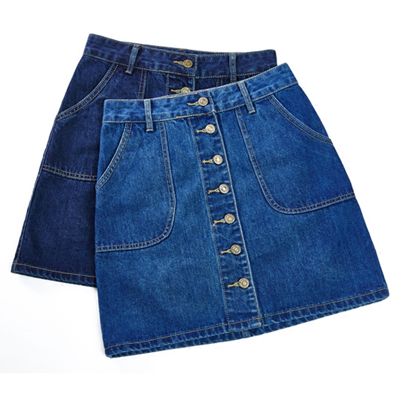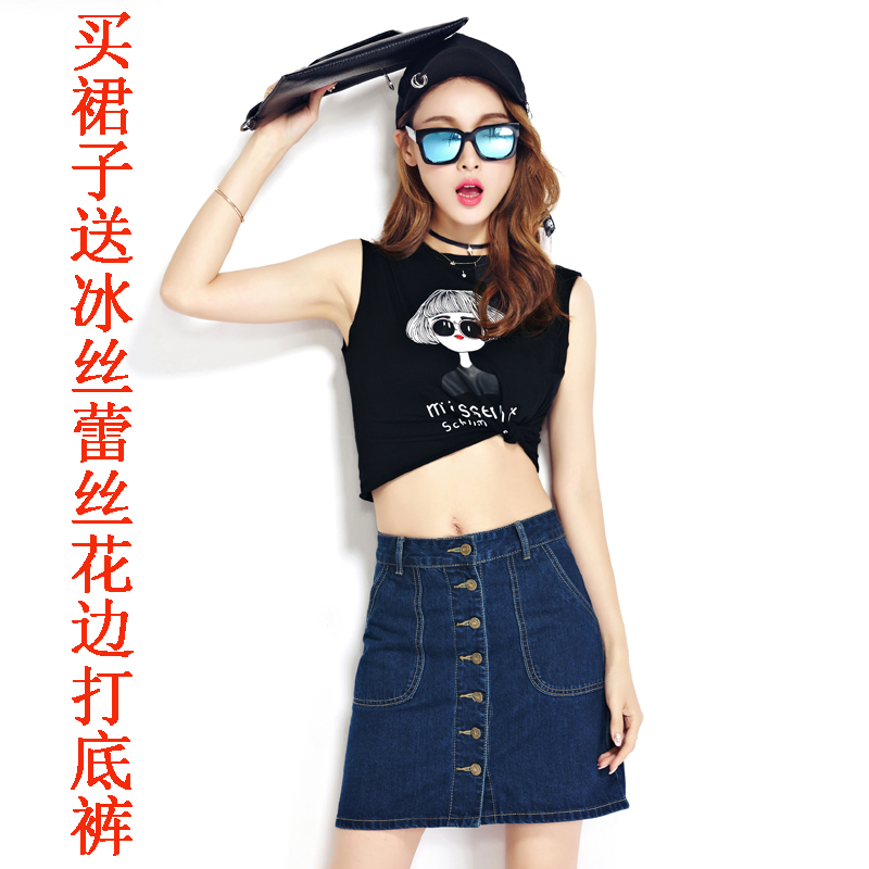 韓版高腰牛仔裙半身裙女單排扣A字裙包臀短裙顯瘦學生大碼半裙夏