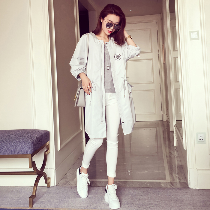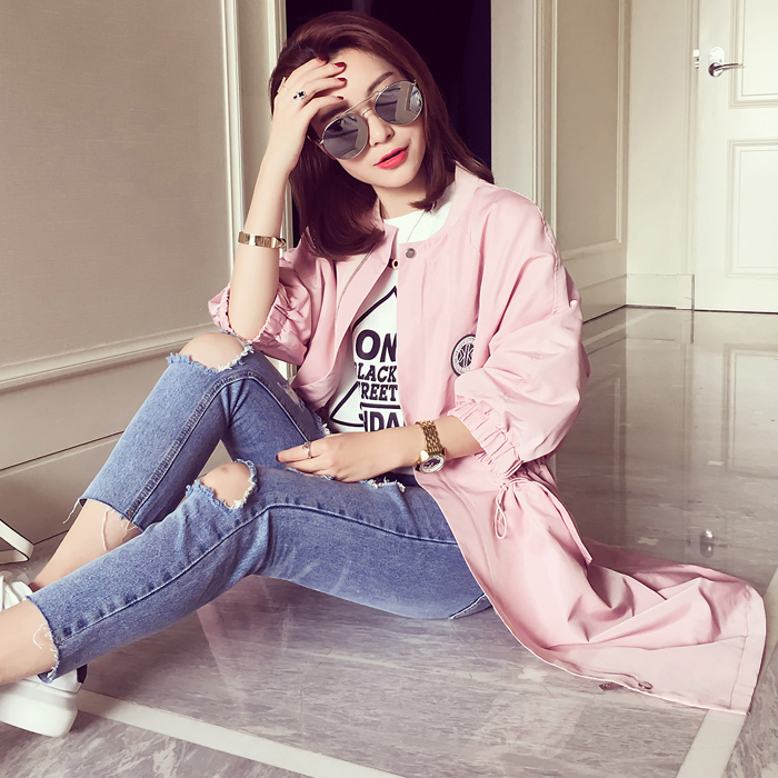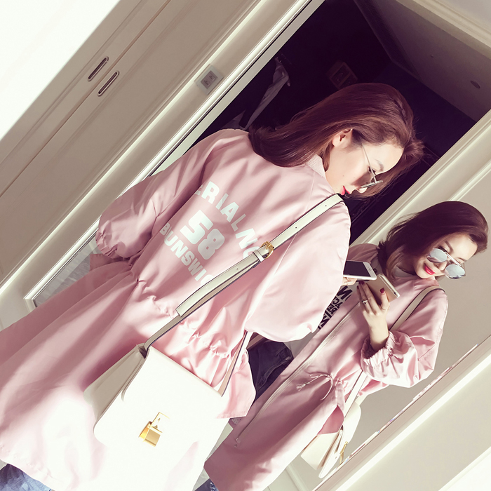 風衣女春秋季2017韓版外搭中長款bf風抽繩收腰上衣服學生百搭外套