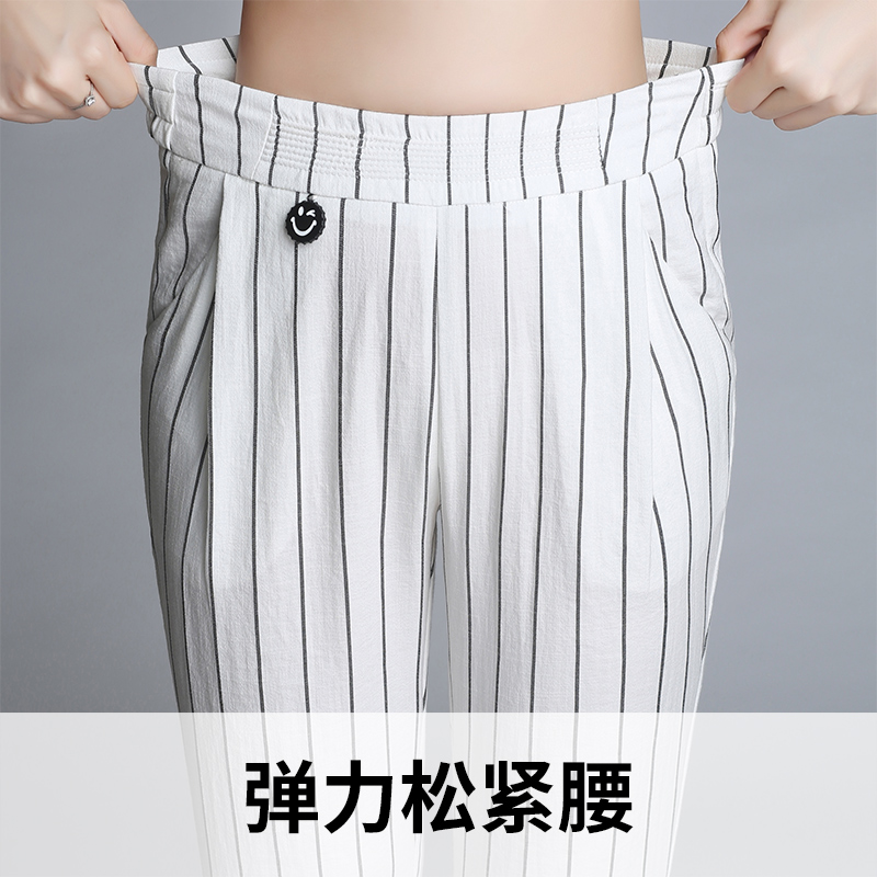條紋哈倫褲女九分褲春夏西裝褲顯瘦寬松小腳褲高腰休閑長褲薄款夏