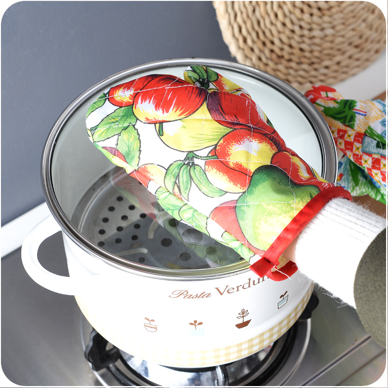 時尚花色廚房微波爐隔熱防燙棉手套加厚耐高溫烤箱烘焙手套單只售