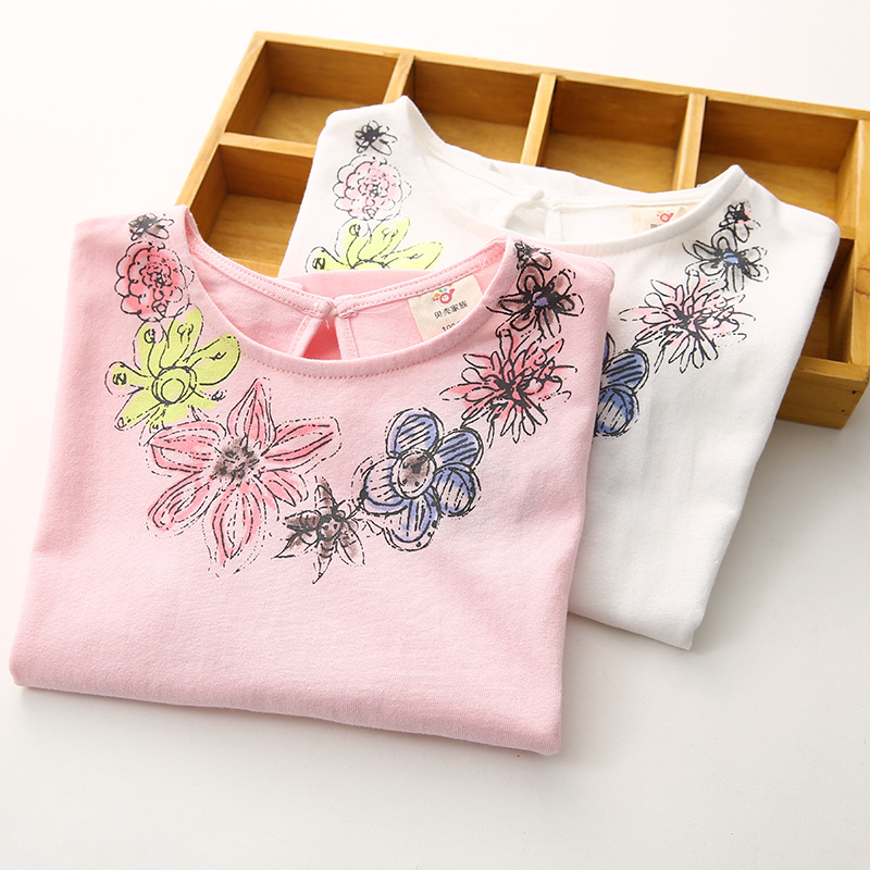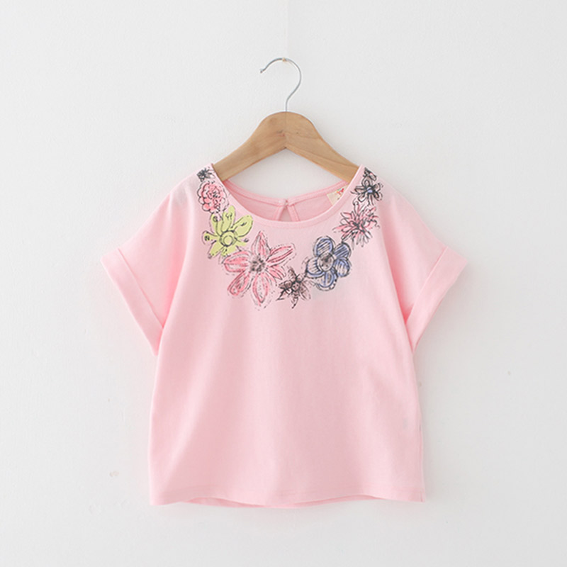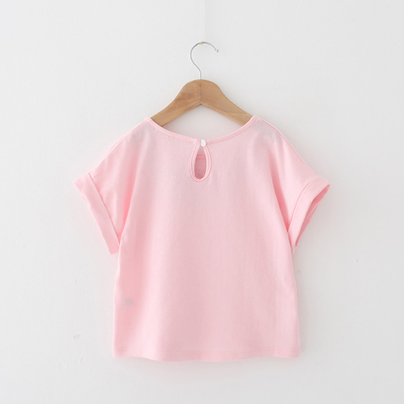 夏裝新款純色女童童裝 兒童寶寶領口花朵短袖T恤 女 tx-5450