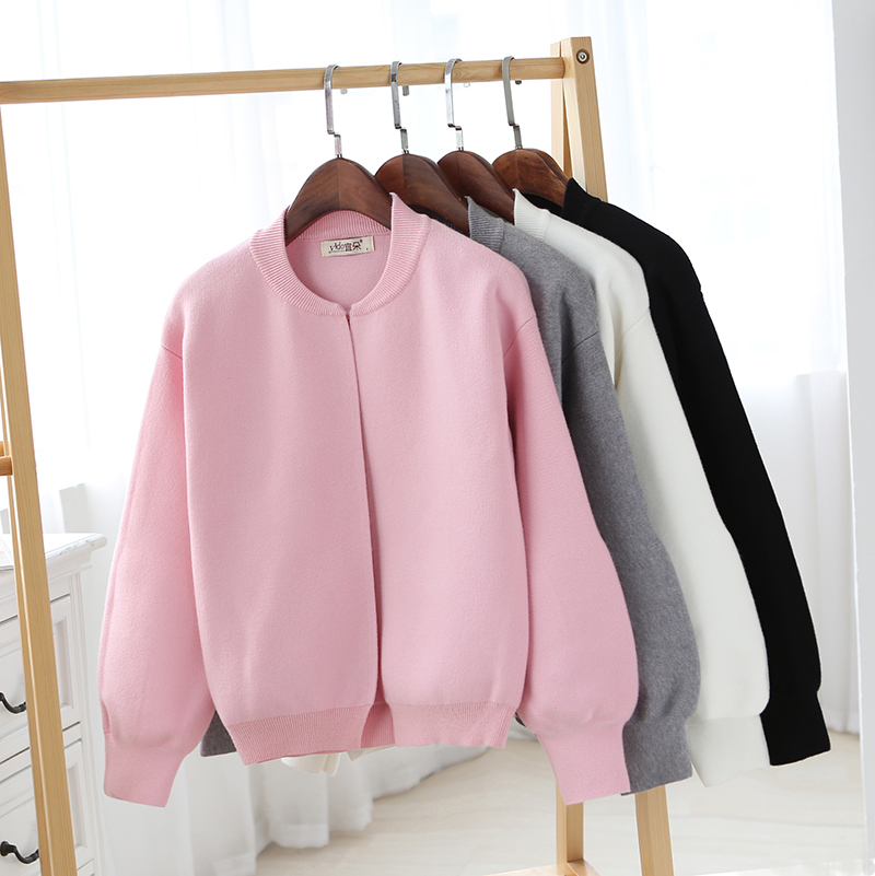 春季新款開衫毛衣外套女短款燈籠袖百搭寬松加厚外搭針織開衫
