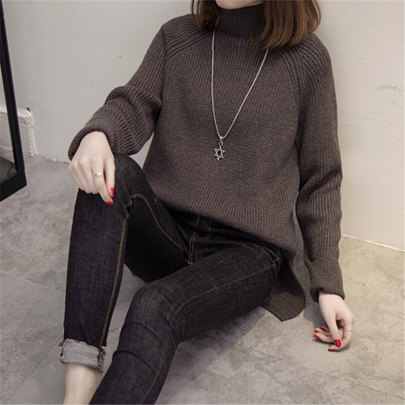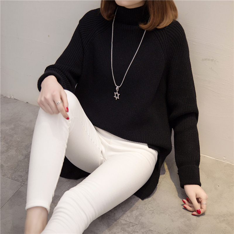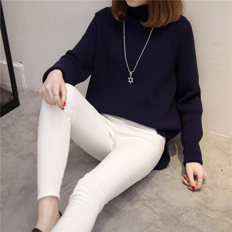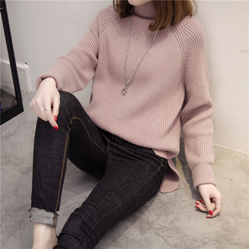 新款潮上衣秋冬裝套頭高領針織衫女裝韓版寬松純色冬季打底衫