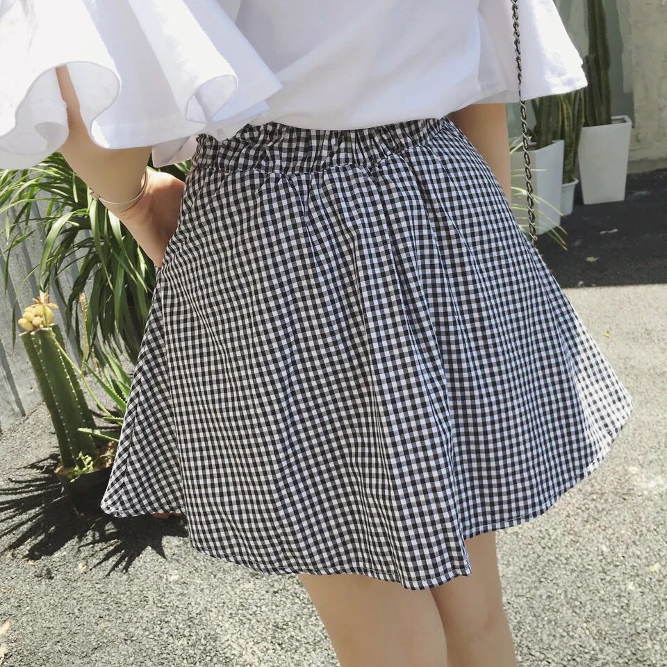韓國小清新格子單排扣A字裙半身裙夏季2017新款女韓版百搭短裙子