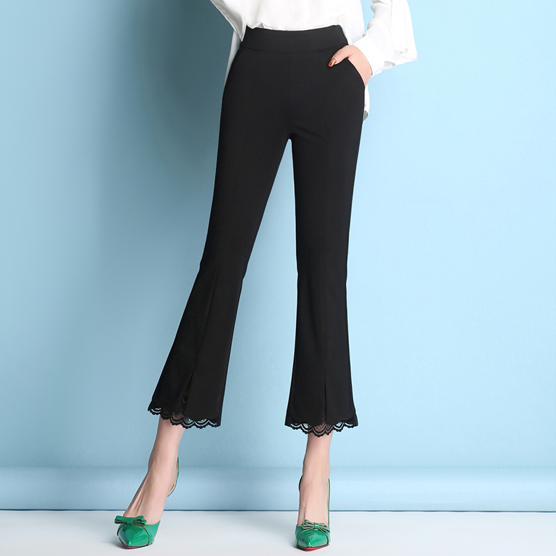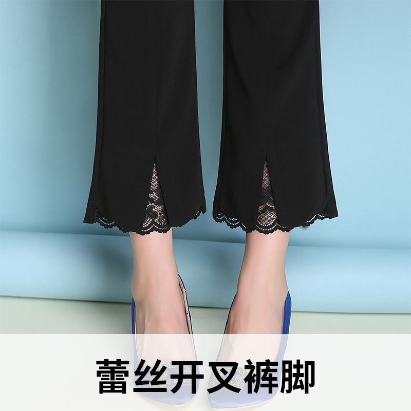 開叉喇叭褲女九分褲黑色顯瘦高腰微喇褲新款夏季薄款西裝褲休閑褲