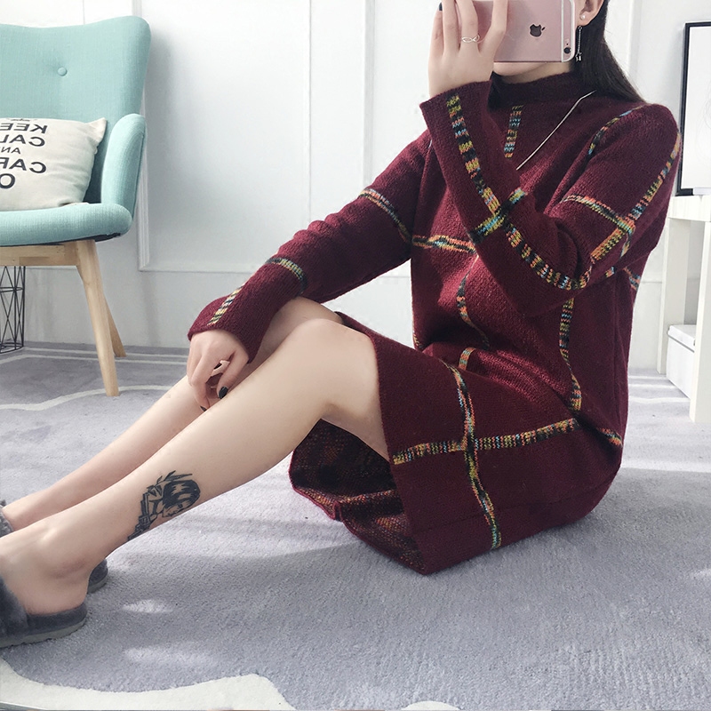 半高領套頭毛衣女秋冬裝韓版寬松中長款針織衫長袖女裝新款潮