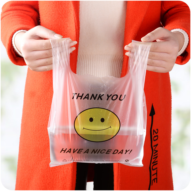 加厚透明笑臉食品袋手提塑料袋子超市購物打包袋背心馬夾袋50個裝
